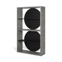 Zero is a bookcase with two impactful circles on the back with an eye-catching effect.