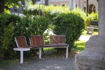 The legs are located in the axis of the bench, which simplifies the silhouette, facilitates access from both sides and helps with cleaning of the space under the bench. The seats can also be wall-mounted, which expands the possibilities of the range.