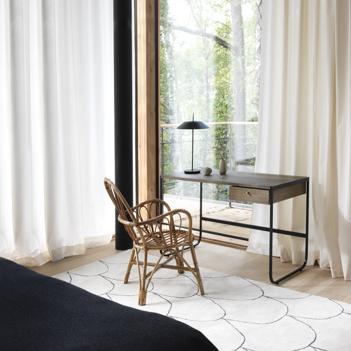 Desk with bent metal structure that comes with 1 drawer in the same veneer as the desk top. Polyurethane treated oak. Three drawers are maximum capacity.