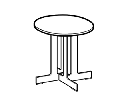 A collection of tables with a contrasting wood, marble or glass top resting on an extremely light frame. The very thin metal blades of the base allow it to be used either separately or in pairs, for round, oval or rectangular tables.