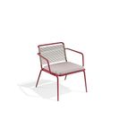 Steel stackable lounge chair – its low seat, cushion included, and rope backrest invite relaxation and conversation. Characterised by lines that are inspired by the Bauhaus school and give it extraordinary elegance.