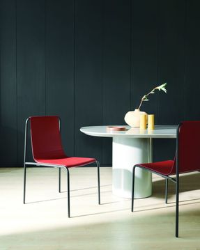 The design offers strong visual uniformity in which continuity between the seat and backrest dialogues with the delicate lines of the frame in a blend of fluidity and a sculpted appearance. Its delicate and harmonious presence and its stackability make it an ideal option for the contract world that adapts easily to both public and domestic environments.