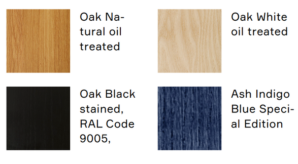 Solid European oak. Bottom: Veneer MDF. Natural bend leather