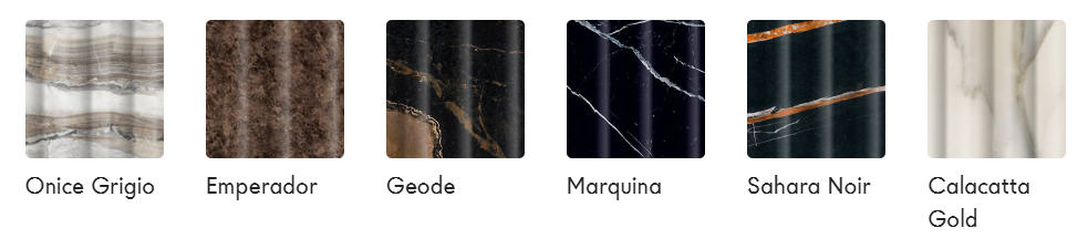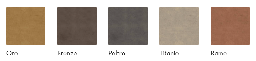 Three shimmering metallic colours dominate the surface evenly, creating a bright, warm and dynamic look, available in a range of matt and polished finishes.