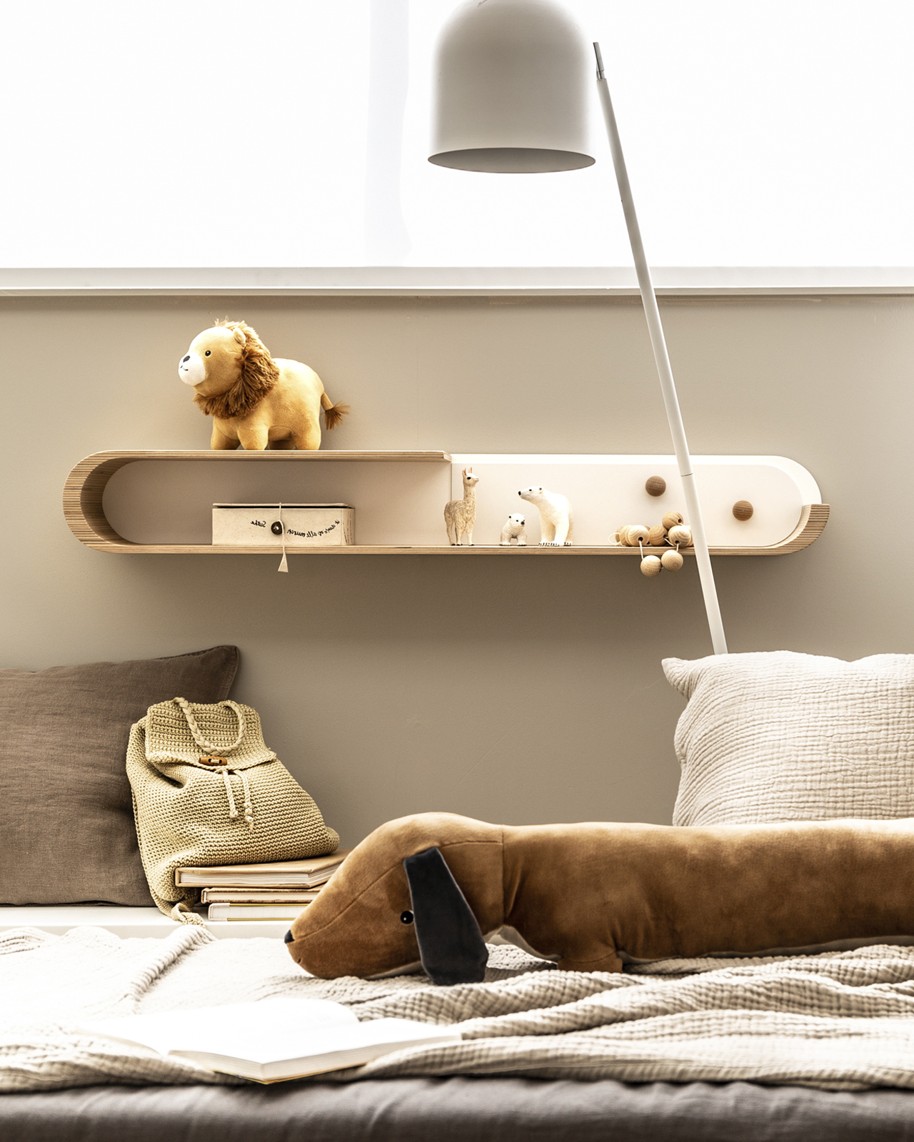 Our most compact shelf for all your child’s essentials. Perfect, next to the bed, for a lamp, book or alarm clock. With stunning wooden details this shelf adds beauty to any wall.