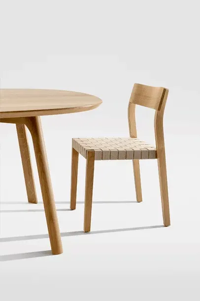The SIT chair collection is being extended to include a version with a woven cotton belt. The seat is carefully woven by hand, guaranteeing the highest quality.