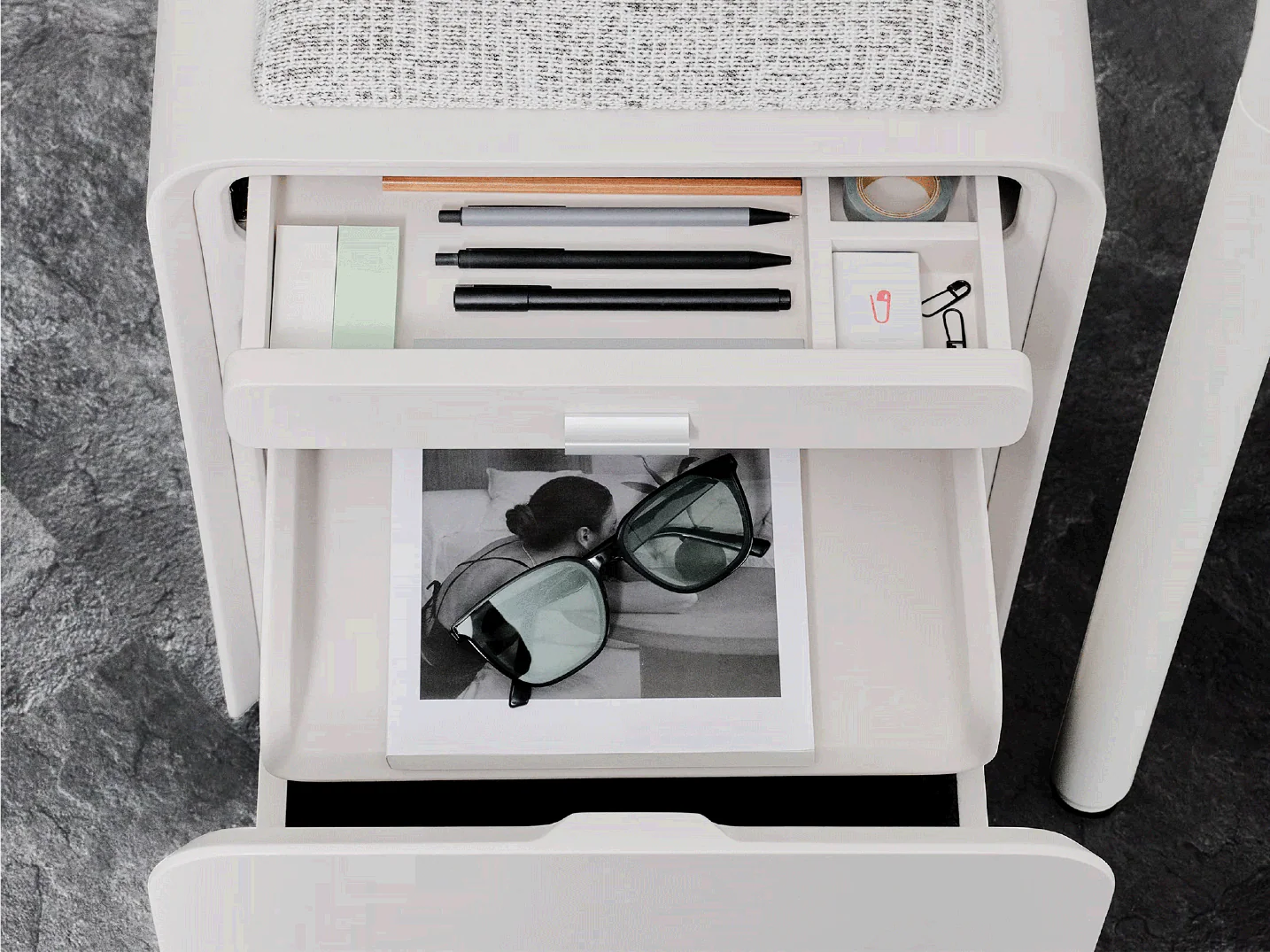 With tidiness and a neat workspace as our ethos, Galena hides much of its functional parts behind the large bottom drawer.