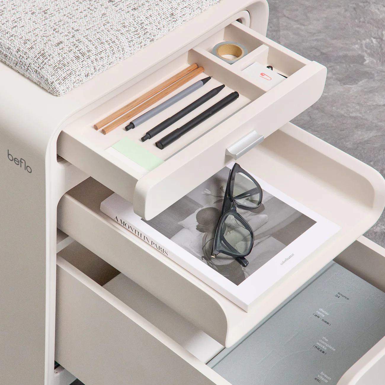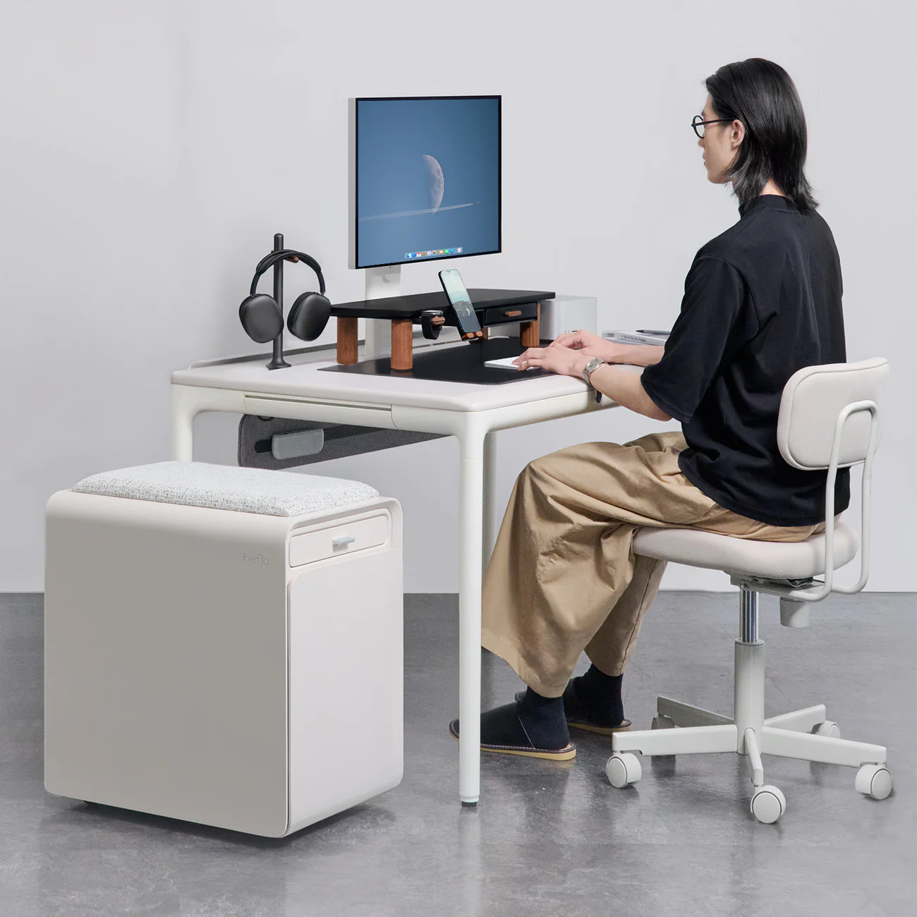Designed as a complement to the Tenon desk, Galena embodies the same commitment to a clean and clutter-free workspace.
