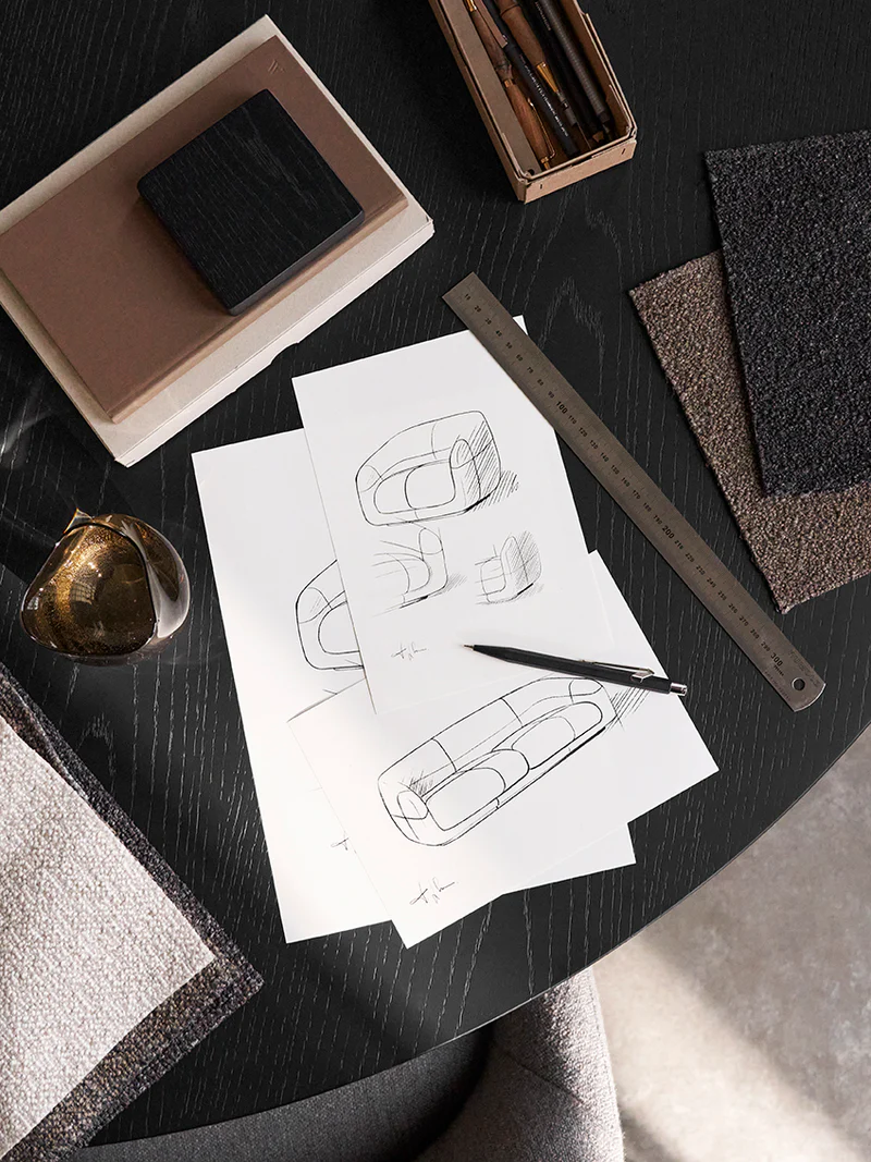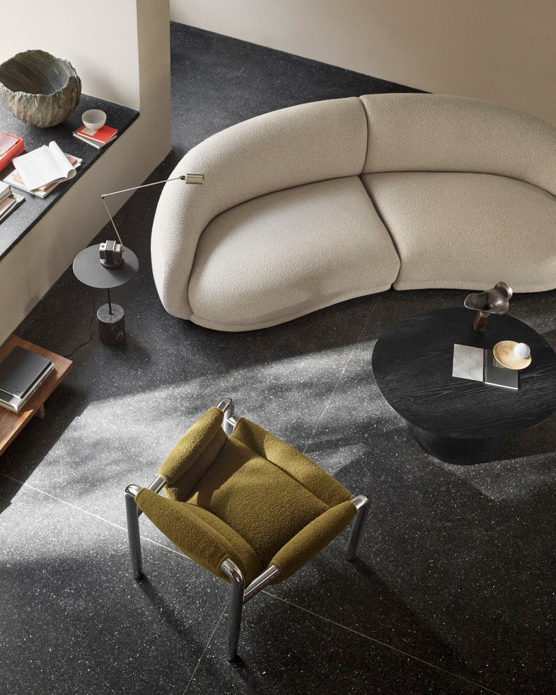 The collection spans its character across a 2,5- and 3-seater sofa, a curved 3-seater sofa, and a lounge chair with returning swivel function.
