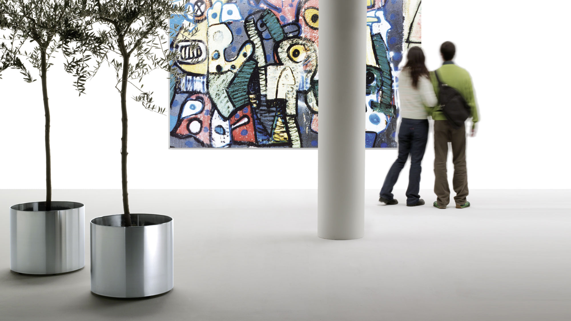 Given that in nature there is no existing material which is completely unaffected by atmospheric factors, these planters are to be considered suitable for outdoor use having shown only slight superficial changes when subjected to the corrosion resistance test of 500 hours exposure in a salt spray chamber; however are not suitable for use in swimming pools and saunas, where the athmosphere is loaded with chlorine, because specific antibacterial substances used for the routine sanitisation of fittings can cause powerful aggressive reactions capable, in the long period, of damaging their surface.