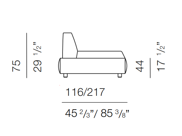 Without armrests, compact and with the possibility to be completely dismantled, the sofa is available in linear 2 / 3-seater versions and in three sizes (from about 160 cm to 2 metres in length).